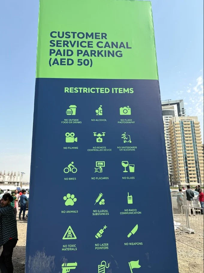 ٹریفک جام سے بچنے کے لیے کچھ شائقین اسٹیڈیم پہنچنے کے لیے کبھی کبھار اسکیٹ بورڈز اور سائیکل کا سہارا لیتے ہیں مگر دبئی اسٹیڈیم کی انتظامیہ نے اب اعلان کردیا ہے کہ یہ چیزیں اسٹیڈیم کے اندر لے جانے کی اجازت نہیں ہوگی۔